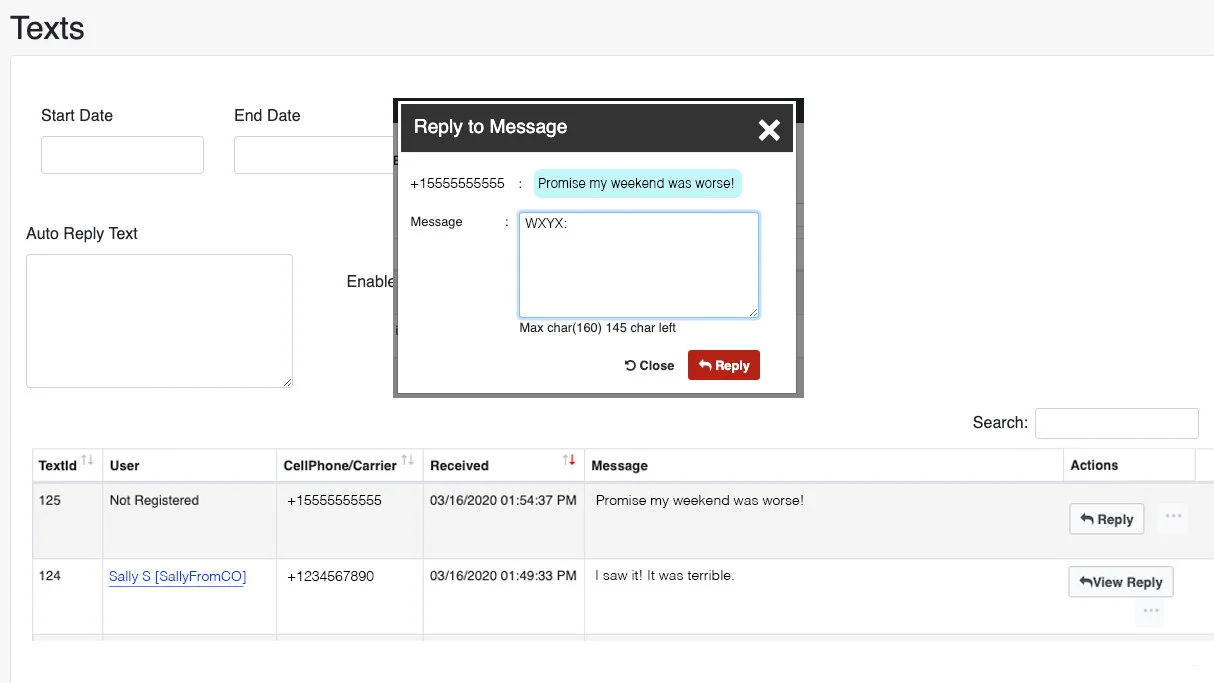 Auto-Reply Text: Also optional, this is text that will be automatically sent in response to every inbound text message. Be sure to enable or disable as needed.