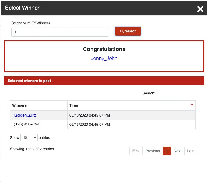 When the Select Winner screen appears, enter the number of winners you need to select.